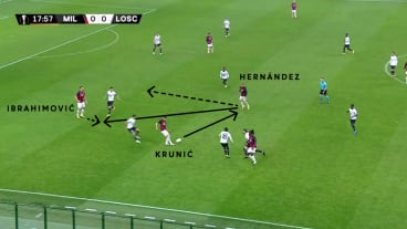 Krunić passt zu Hernández, der mit dem ersten Kontakt zu Ibrahimović spielt und einen Tiefenlauf startet.