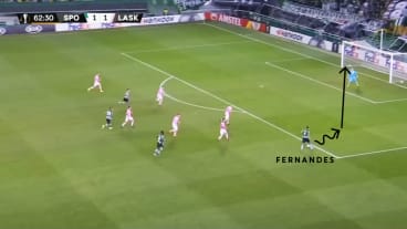 Dabei blickt Fernandes in die Tiefe und nimmt den in die Tiefe startenden Martial wahr. Fernandes spielt einen präzisen und in der Schärfe angemessenen Pass in die Schnittstelle zu Martial, ...