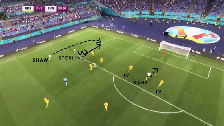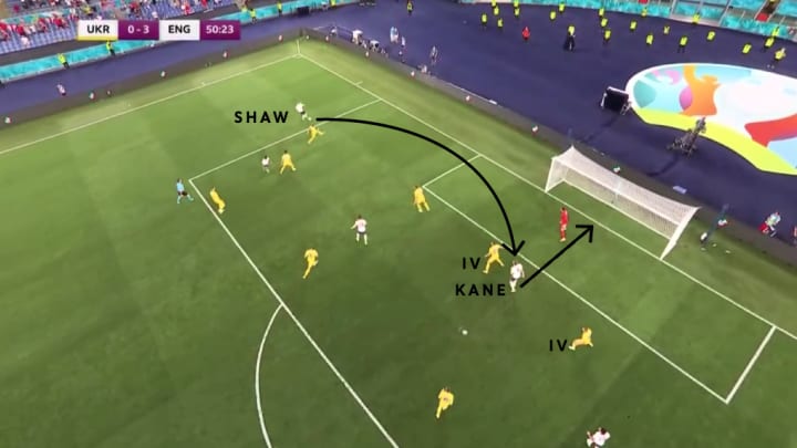 Im letzten Viertelfinale der Europameisterschaft konnte sich England deutlich mit 4:0 gegen die Ukraine durchsetzen und trifft nun im Halbfinale auf die Überraschungsmannschaft aus Dänemark. Die meiste Torgefahr strahlten die Engländer bisher mit Angriffen über links aus. Das 3:0 von Harry Kane in der 50. Minute bestätigte dieses Muster und wurde von Luke Shaw mit einer Flanke aus der linken Außenspur vorbereitet. Ein Treffer, der die Wichtigkeit der defensiven DFB-Leitlinie „Im Raum, aber gegnerorientiert verteidigen" aufzeigt. Die Innenverteidiger der Ukraine, eigentlich in einer 2-gegen-1-Überzahl, decken nur den Raum ab und stellen keinen direkten Kontakt zu Kane her. Dieser positioniert sich clever zwischen den beiden Innenverteidigern und kann dadurch die Flanke von Shaw ohne Gegnerdruck aus zentraler Position ins Tor köpfen.