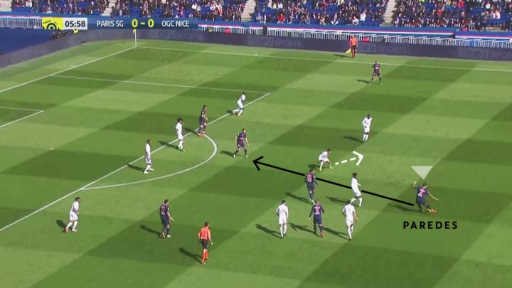 Vor allem gegen tiefstehende, kompakte Mannschaften ergeben sich selten Möglichkeiten für einen linienüberspielenden Vertikalpass. Viele Gegner verschieben so konsequent und geordnet, dass keine offenen Passwege entstehen. Hier kann der „getarnte Pass" ein geeignetes Mittel sein, um den Gegner zum horizontalen Verschieben zu provozieren und dadurch Räume für ein Spiel in die Tiefe zu öffnen.