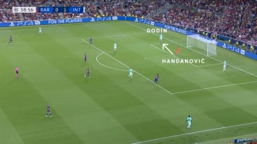 Godín spielt De Vrij an, der den Ball zurück auf Handanovič klatschen lässt.