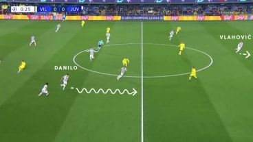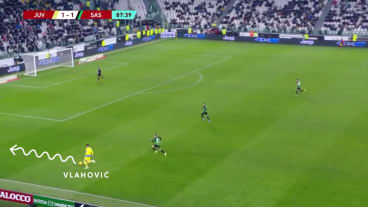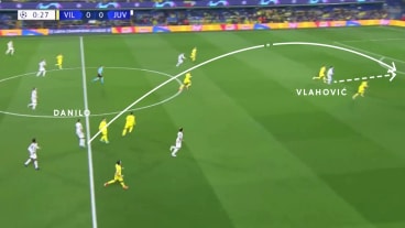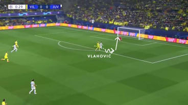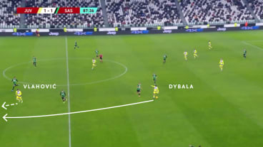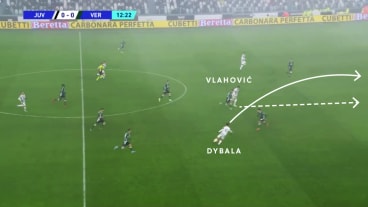 Dybala spielt einen Chipball in den Lauf von Vlahović, ...