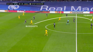 Busquets spielt einen halbhohen Schnittstellenpass zu Torres, ...