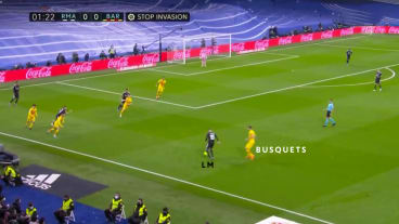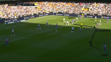 ... und passt zu Busquets, der den Ball mit dem ersten Kontakt auf Alba weiterleitet.