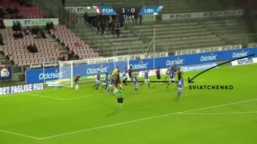 Bei einem Eckball überläd der FC Midtjylland den ballnahen Pfosten und öffnet dadurch einen Raum, in den Sviatchenko im Bogen hineinstartet.