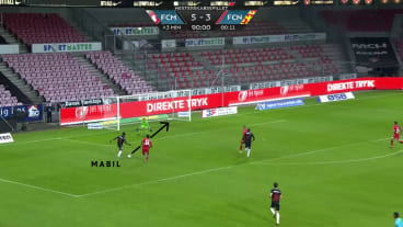 Mit dem ersten Kontakt flankt Vibe den Ball zum ballfernen Pfosten auf Mabil, der per Volley einen Treffer erzielt.