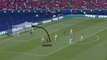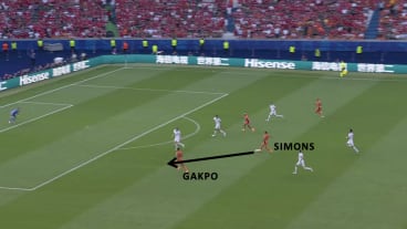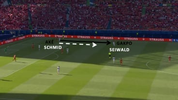 Aké passt unter Druck zu Gakpo, der von Schmid und Seiwald gepresst wird ...