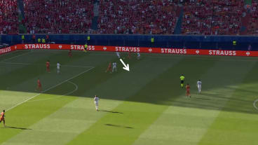 Durch den hohen Gegnerdruck zwingt Österreich den Gegner zum riskanten Direktspiel in der Zentrumsspur, ...