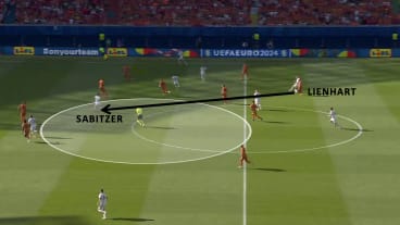 Dadurch ensteht ein großer Raum in der Zentrumsspur, den Lienhart für einen Pass zu Sabitzer nutzt.