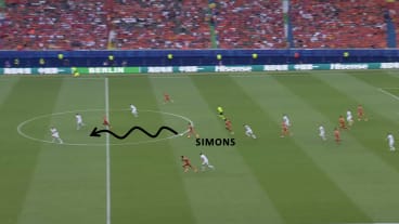 Österreich hat bei der Euro bisher mit 8.08 den zweitniedrigsten PPDA-Wert (Pässe pro Defensivaktion) hinter der deutschen Nationalmannschaft – auch gegen die Niederlande ließ Rangnick seine Spieler wieder hoch anlaufen, um lange Befreiungsschläge oder hohe Ballgewinne zu forcieren. Da auch Koeman häufig im Angriffspressing agieren ließ, entstand ein zum Teil sehr chaotisches Spiel mit vielen Mittelfeldduellen um zweite Bälle und Umschaltaktionen. Hierbei zeigten sich die Österreicher griffiger, sodass sie in den meisten dieser Situationen die Oberhand behielten und den Niederländern nur wenige kontrollierte und gefährliche Angriffe erlaubten. Strukturell schob Marcel Sabitzer aus seiner Zehnerposition in die vorderste Linie neben Marko Arnautovic, sodass Österreich zumeist aus einem 4-4-2 heraus presste, wobei die beiden Sechser ein sehr gutes Timing beim vertikalen und horizontalen Verschieben zeigten.