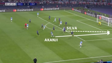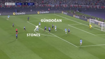 In der 68. Minute schaffte es City eine der wenigen Male, sich weit in der Hälfte von Inter Mailand festzuspielen. Durch das tiefe Verteidigen der Italiener ergab sich viel Raum für Manchesters Innenverteidiger. Diesen nutzte Manuel Akanji für ein raumüberwindenes Dribbling mit anschließendem Tiefenpass auf Bernardo Silva. Dessen Flanke konnte Inter zwar zunächst klären – der Abpraller landete jedoch bei Rodri, der den Ball mit einem präzisen Innenspannstoß ins Tor beförderte.