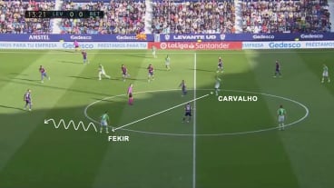 Carvalho spielt einen Vertikalpass zu Fekir, der mit der Ballannahme nach vorne andribbelt.