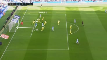 Portu nutzt seinen Dynamikvorteil und passt quer zu José, der die Vorlage ohne Druck verwertet.