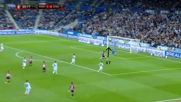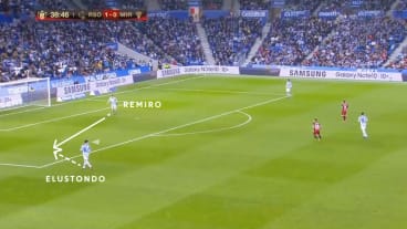Torhüter Remiro passt zu Elustondo, der vorab in die Tiefe blickt.