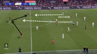 Im Spiel über den Dritten kombiniert sich Lazio zu Guendouzi vor, ...