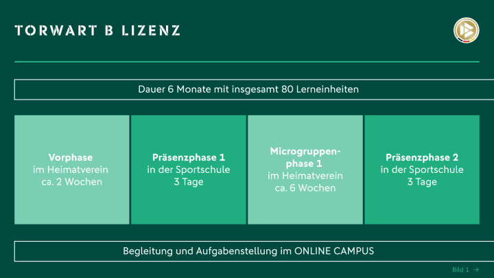 - der Nachweis über die Teilnahme an einem Torwart Leistungskurs des DFB (Stufe 2),