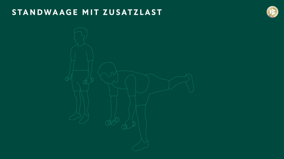 - Das eine Bein nach hinten strecken, während der Oberkörper nach vorne gebeugt wird