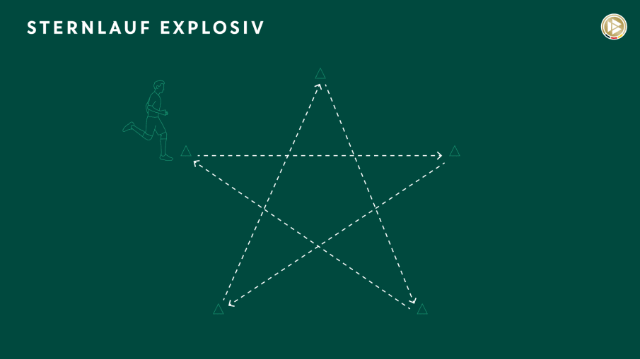 - An einem Hütchen starten und jeweils ein entferntes Hütchen im Stern anlaufen